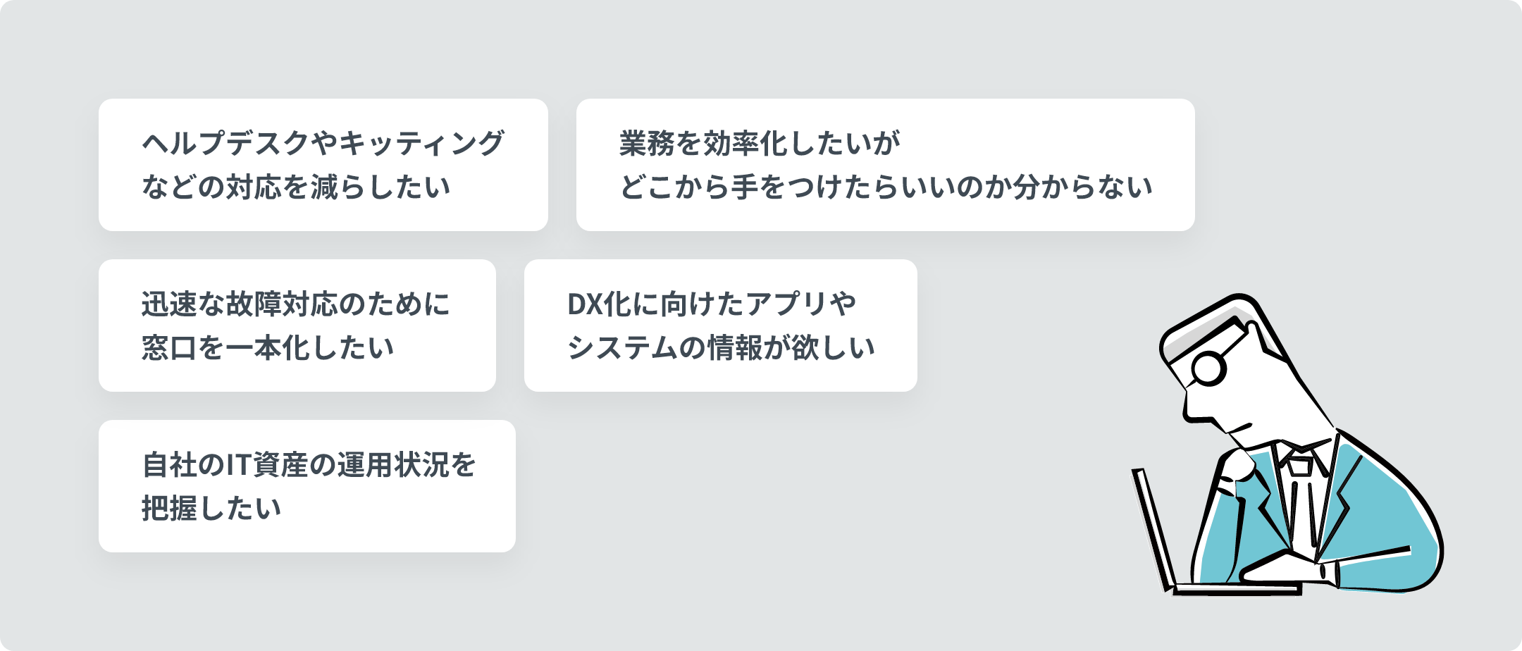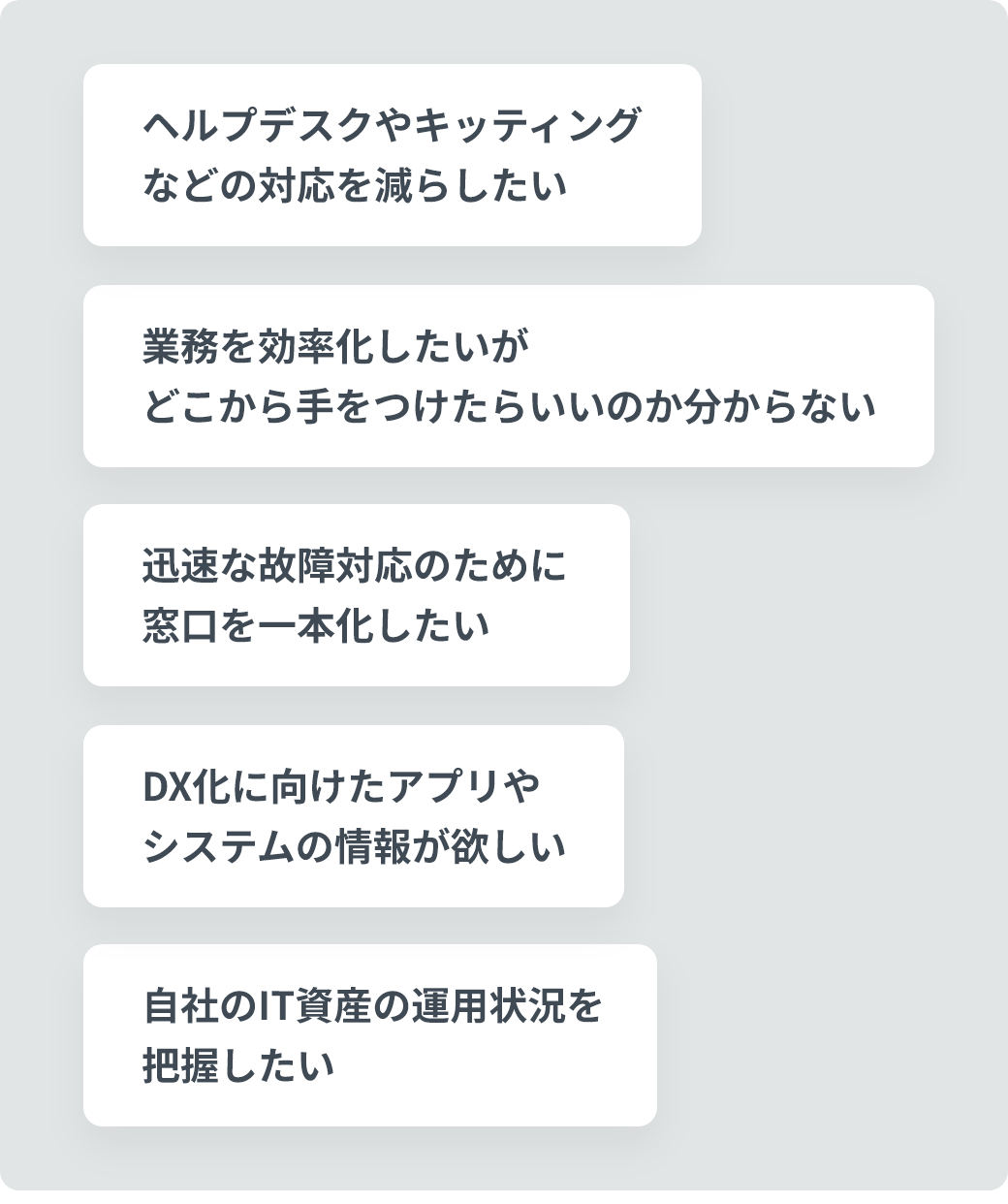 - 業務に関わるパソコンや周辺機器、アプリケーションを包括的に対応します。